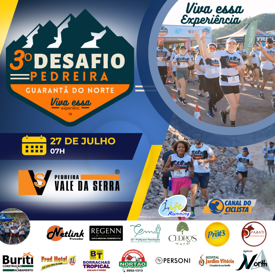 Estão oficialmente abertas as inscrições para o 3º Desafio da Pedreira, evento que promete agitar Guarantã do Norte no próximo dia 27 de julho de 2025. O desafio chega à sua terceira edição com a proposta de unir saúde, lazer e aventura em um cenário impressionante e cheio de energia positiva.