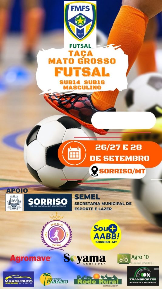 O município de Sorriso-MT esta recebendo a edição 2025 da Taça Mato Grosso de Futsal Sub14 e Sub16 masculino.